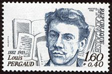L'auteurIl est né à Belmont (Doubs) le 22 janvier 1882 ; son père est instituteur, sa mère issue d'une famille paysanne et il a un frère aîné, Lucien, né en 1883.Après une enfance rurale, dans cette région de Franche-Comté qui va marquer toute son oeuvre, il est envoyé à Besançon pour y faire ses études secondaires, puis, en 1898, il intègre l'Ecole Normale. Au cours de ses études, se produit le drame dont le jeune Louis Pergaud se remettra difficilement. Son père tombe malade et décède en février 1900, mort aussitôt suivie par celle de la mère en mars. En deux mois, les enfants Pergaud sont devenus orphelins et pris en charge par un oncle qui ne semble pas avoir réussi à adoucir leur chagrin. Louis n'en termine pas moins ses études et devenu instituteur reçoit une première affectation à Durnes, dans le Doubs, en 1901, puis à Landresse, toujours dans le Doubs, en 1905. Il s'est marié, en 1903, avec une collègue institutrice. Mais le mariage, pas plus que l'oncle, ne parvient à tirer Louis de sa mélancolie. Sa rencontre avec Léon Deubel (1879-1913) est sans doute déterminante pour le conforter dans ses ambitions littéraires et le fait est que Deubel l'aide à publier son premier recueil de poèmes, L'Aube, en 1904. En 1907, il rejoint Debeul à Paris, abandonnant à la fois sa vie d'instituteur et son épouse. Il trouve du travail, continue à écrire et publie en 1908, un second recueil poétique, L'Herbe d'avril. Finalement, il reprend son travail d'instituteur plus favorable à ses projets d'écrivain, car c'est bien de cela qu'il s'agit maintenant. En 1908, les époux Pergaud divorcent. Pendant son séjour à Landeresse, Louis Pergaud avait fait la connaissance de Duboz, cabaretier et grand raconteur d'histoires, et de sa fille Delphine. Delphine le rejoint à Paris. Pergaud et Delphine se marient en 1910, l'année de la publication du recueil de nouvelles, De Goupil à Margot. Le livre reçoit le prix Goncourt. Il avait eu entre autres compétiteurs, Apollinaire avec L'Hérésiarque et Cie, et Colette, encore nommée Colette Willy, avec La Vagabonde. A l'époque, le prix est encore quelque peu confidentiel, mais il est alors doté (5.000 francs, ce qui n'est pas rien). Le succès de librairie confirme le choix de l'Académie, et celle-ci se fait ainsi mieux connaître, en même temps que Louis Pergaud, poète pesque inconnu, devient un écrivain connu et reconnu. |